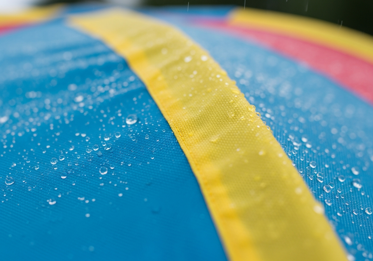 防水・耐水圧1500mm、引張強さ・引裂強さの性能が高く、屋外での風・雨条件でも安心。