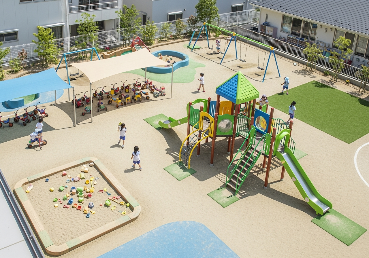 日差しの方向、風の抜け方、排水、導線などを総合的に判断し、園児が安全に利用できる配置をご案内いたします。