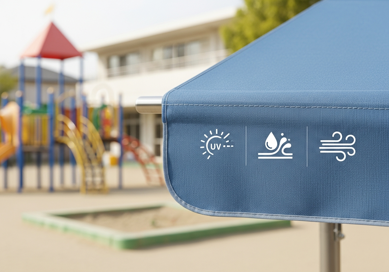 特に退色しにくいアクリル繊維を使用しているため、常設テントでも色あせが少なく、幼稚園の景観を長期間きれいに維持できます。