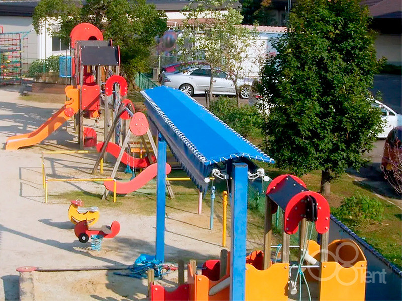 夏場の砂場は、直射日光を浴びて砂自体の温度が急上昇し、火傷や熱中症の危険が高まります。 こちらの幼稚園様では、これまで簡易的なパラソル等を使用されていましたが、「範囲が狭い」「風に弱い」といった課題がありました。そこで、砂場全体をしっかり覆うことができ、かつ安全性の高い固定式のオーニングをご提案しました。