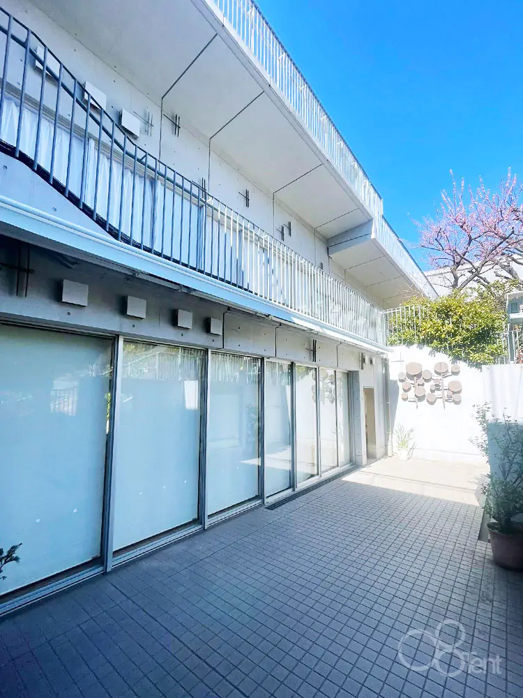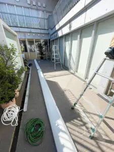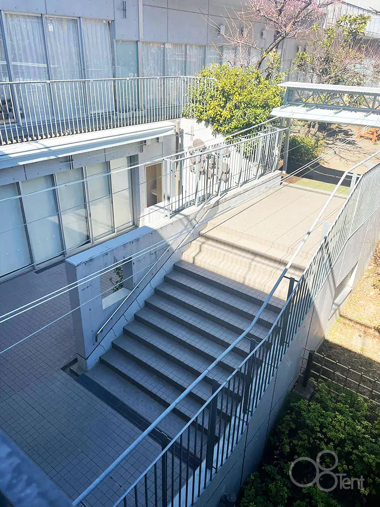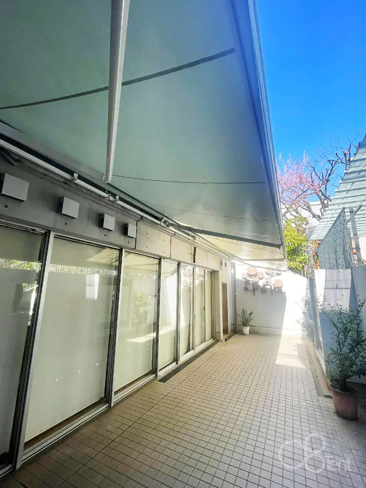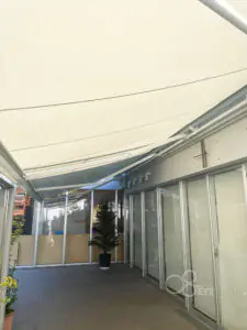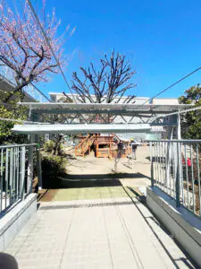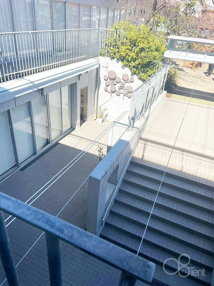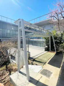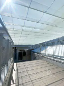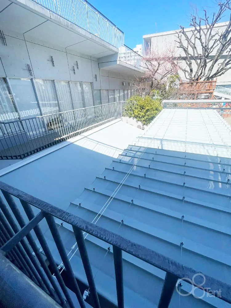 開閉式シェード+オーニングを幼稚園・階段通路の日よけ用に施工|東京都豊島区